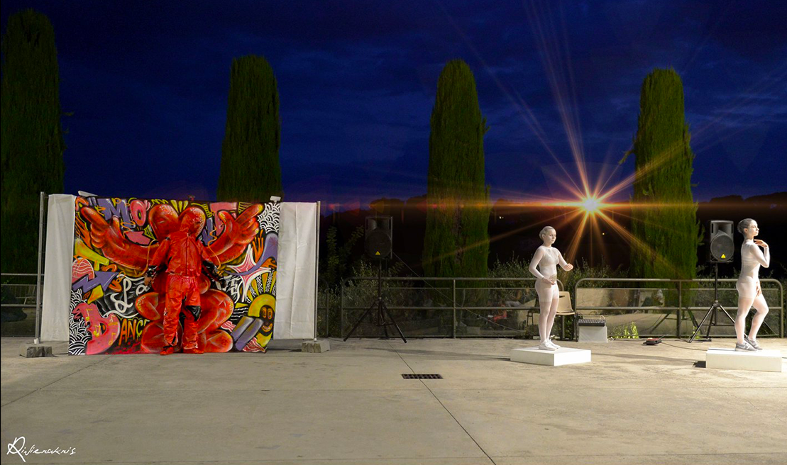Performance créée in situ pour Les Nocturnes d’Art de Biot 2018, CRÉATION de la Cie San.TooR en collaboration avec l’artiste Faben, parrain des Nocturnes d’Art de Biot 2018.